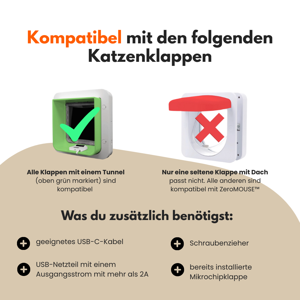 No. ZeroMOUSE™ is compatible with 99% of all common microchip cat flaps. Only models with a fixed roof are excluded – in this rare case, the device can be returned.