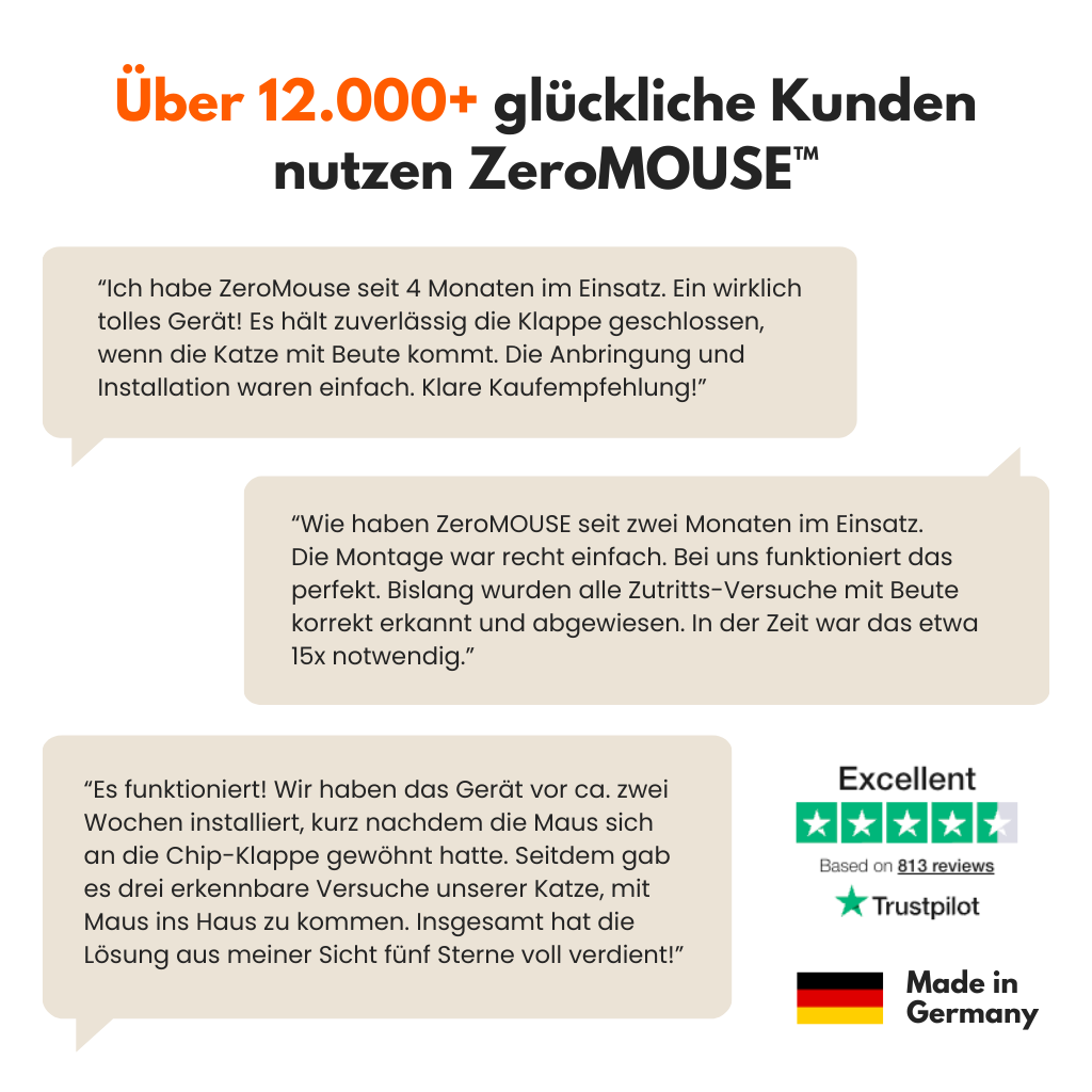 Compact and inconspicuous. High-quality components ensure clear detection—even with night vision. Your existing microchip cat flap remains unchanged, ZeroMOUSE™ only supplements it.